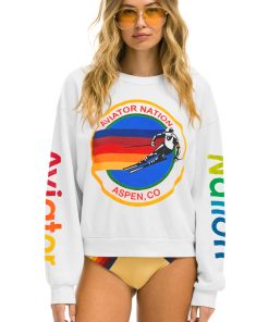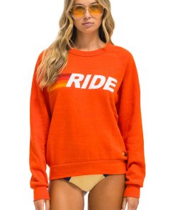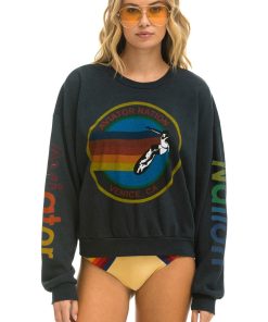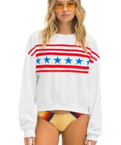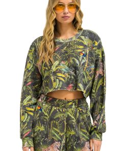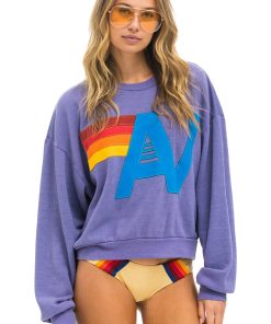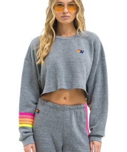 Aviator Nation Women’s Tops Rugby Stitch Cropped Crew Sweatshirt Relaxed – Heather // Neon