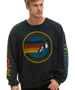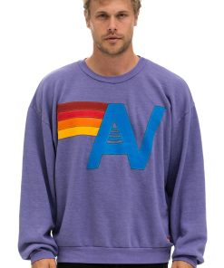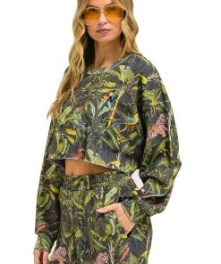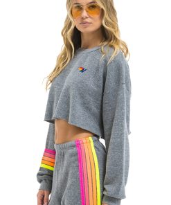 Aviator Nation Women’s Tops Rugby Stitch Cropped Crew Sweatshirt Relaxed – Heather // Neon