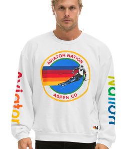 Aviator Nation Women’s Tops Caution Smiley 2 Embroidery Fleece Half Zip Sweatshirt – Black // Whit