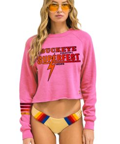 Aviator Nation Women’s Tops Buckeye Fest 2025 Rugby Stitch Cropped Crew Sweatshirt – Neon Pink