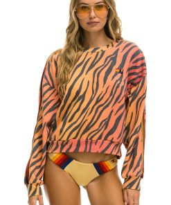 Aviator Nation Women’s Tops Classic Stripe Cropped Crew Sweatshirt Relaxed – Faded Berry