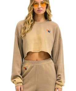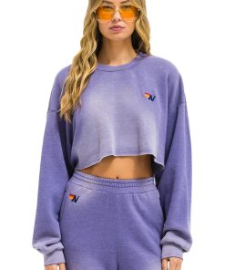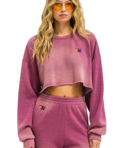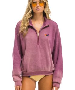 Aviator Nation Women’s Tops Diamond Smiley 2 Fleece Half Zip Color Block Sweatshirt – Red // Sky