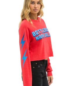 Aviator Nation Women’s Tops Buckeye Fest 2025 Rugby Stitch Cropped Crew Sweatshirt – Neon Pink
