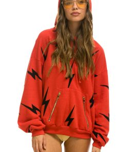 Aviator Nation Women’s Tops Bolt Stitch Repeat Relaxed Pullover Hoodie With Pocket Zippers – Red /