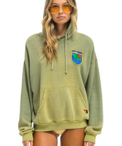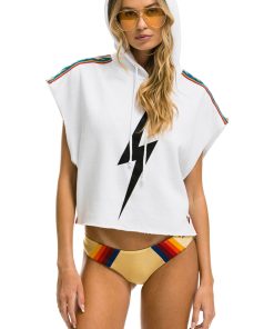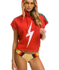Aviator Nation Women’s Tops Bolt Stripe Sleeveless Relaxed Cropped Pullover Hoodie – Kelly Green