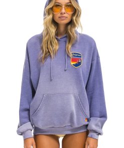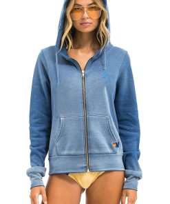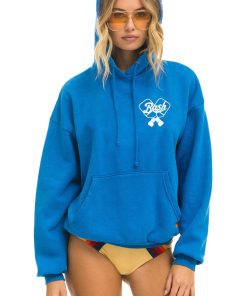 Aviator Nation Women’s Tops Bolt Stitch Repeat Relaxed Pullover Hoodie With Pocket Zippers – Sky /
