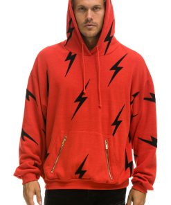 Aviator Nation Women’s Tops Bolt Stitch Repeat Relaxed Pullover Hoodie With Pocket Zippers – Red /