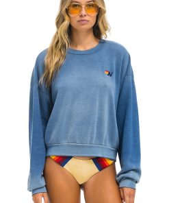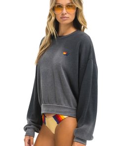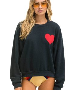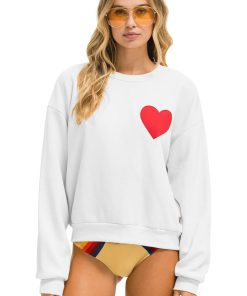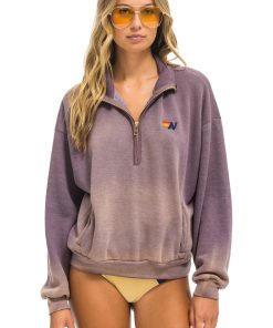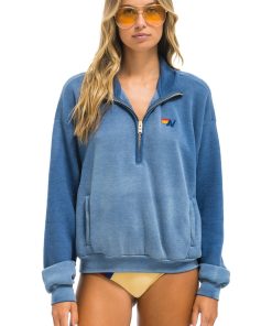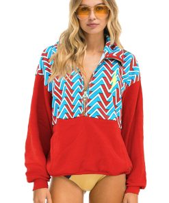 Aviator Nation Women’s Tops Geo Zig Bolt Embroidery Fleece Half Zip Color Block Sweatshirt – Red /
