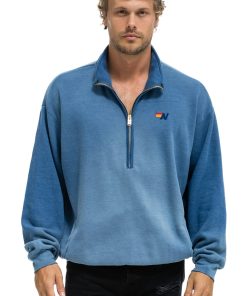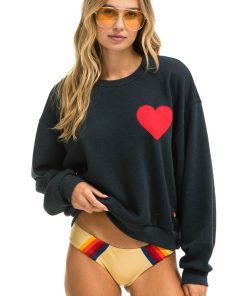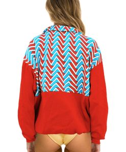 Aviator Nation Women’s Tops Geo Zig Bolt Embroidery Fleece Half Zip Color Block Sweatshirt – Red /