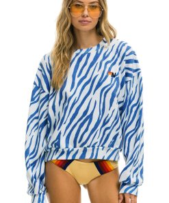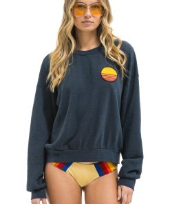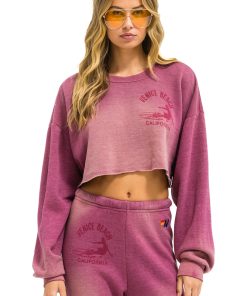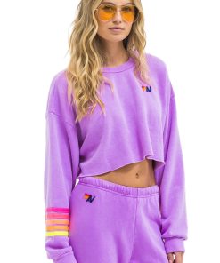 Aviator Nation Women’s Tops Rugby Stitch Cropped Crew Sweatshirt Relaxed – Neon Purple // Neon