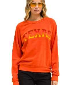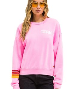 Aviator Nation Women’s Tops University Of Texas Rugby Stitch Crew Sweatshirt Relaxed – Neon Pink