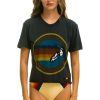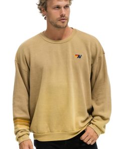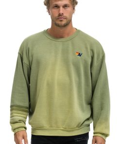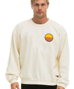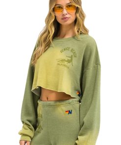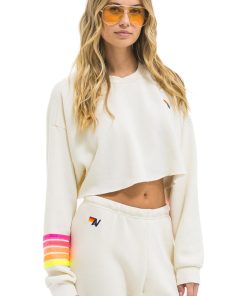 Aviator Nation Women’s Tops Rugby Stitch Cropped Crew Sweatshirt Relaxed – Vintage White // Neon