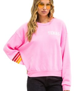 Aviator Nation Women’s Tops University Of Texas Rugby Stitch Crew Sweatshirt Relaxed – Neon Pink