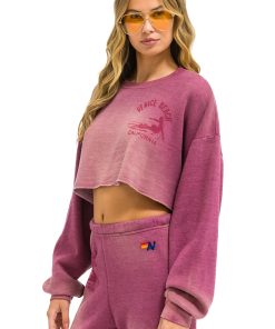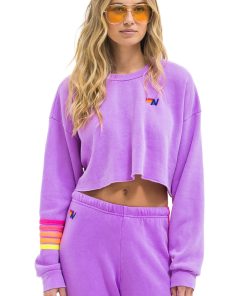 Aviator Nation Women’s Tops Rugby Stitch Cropped Crew Sweatshirt Relaxed – Neon Purple // Neon