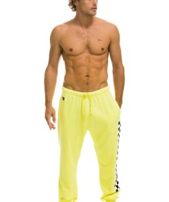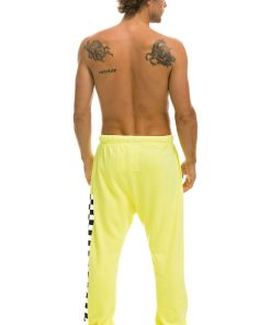 Aviator Nation Men’s Bottoms Check Leg Sweatpants – Neon Yellow