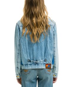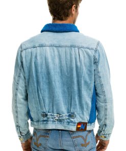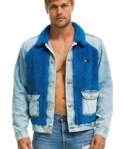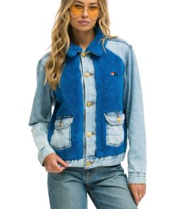 Aviator Nation Women’s Outwear Aspen Sherpa Unisex Denim Jacket – Super Light Blue