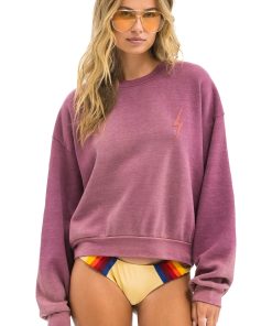Aviator Nation Women’s Tops Bolt Stitch 2 Relaxed Crew Sweatshirt – Faded Berry