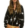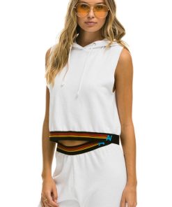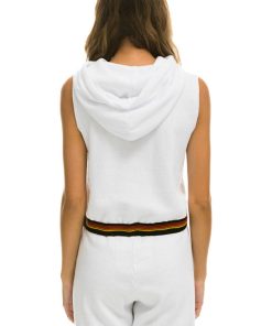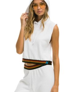 Aviator Nation Women’s Tops Logo Stripe Sleeveless Crop Pullover Hoodie – White