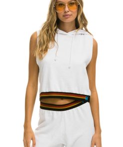 Aviator Nation Women’s Tops Logo Stripe Sleeveless Crop Pullover Hoodie – White