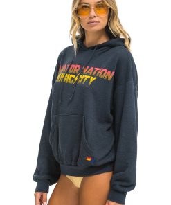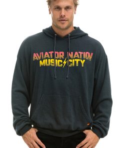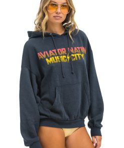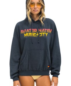 Aviator Nation Women’s Tops Nashville Music City Pullover Hoodie Relaxed – Charcoal