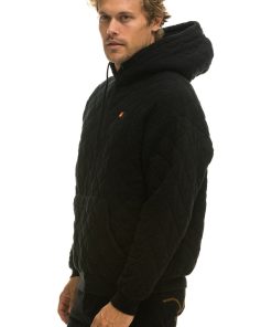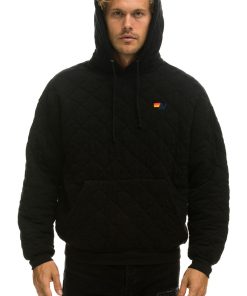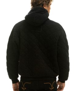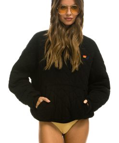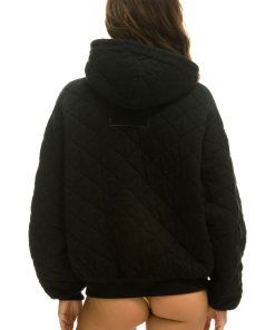 Aviator Nation Women’s Tops Quilted Relaxed Pullover Hoodie – Black