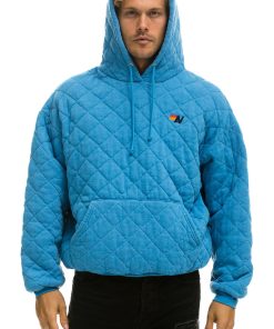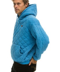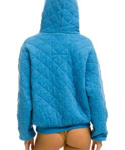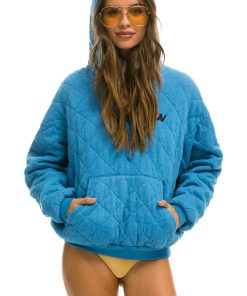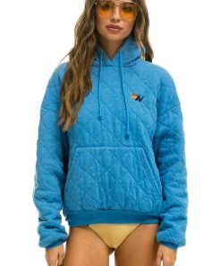 Aviator Nation Women’s Tops Quilted Relaxed Pullover Hoodie – Ocean