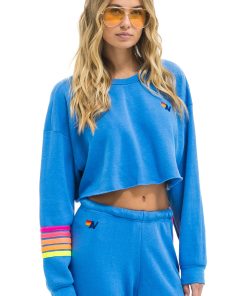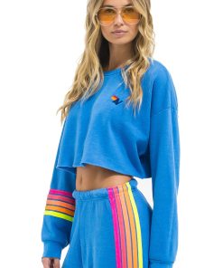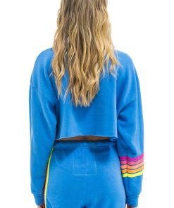 Aviator Nation Women’s Tops Rugby Stitch Cropped Crew Sweatshirt Relaxed – Cobalt // Neon