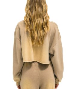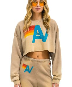 Aviator Nation Women’s Tops Vintage Logo Cropped Crew Sweatshirt Relaxed – Faded Tan