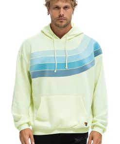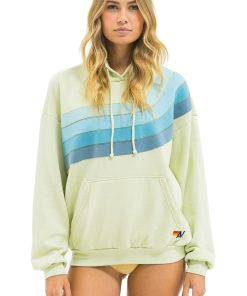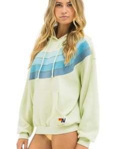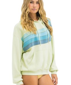 Aviator Nation Women’s Tops Wave Stripe 4 Pullover Hoodie Relaxed – Lime Cream // Seafoam