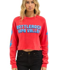 Aviator Nation Women’s Tops Buckeye Fest 2025 Rugby Stitch Cropped Crew Sweatshirt – Neon Pink
