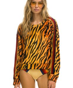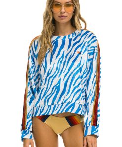 Aviator Nation Women’s Tops Diamond Smiley 2 Fleece Half Zip Color Block Sweatshirt – Red // Sky