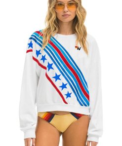 Aviator Nation Women’s Tops Diamond Smiley 2 Embroidery Fleece Half Zip Sweatshirt – Black // Whit