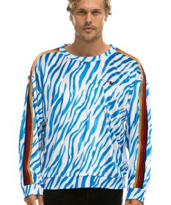 Aviator Nation Women’s Tops Diamond Smiley 2 Fleece Half Zip Color Block Sweatshirt – Red // Sky