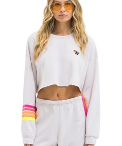Aviator Nation Women’s Tops Rugby Stitch Cropped Crew Sweatshirt Relaxed – Dove Grey // Neon