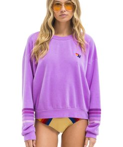 Aviator Nation Women’s Tops Rugby Stitch 2 Relaxed Crew Sweatshirt – Neon Purple // Purple