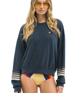 Aviator Nation Women’s Tops Rugby Stitch 2 Relaxed Crew Sweatshirt – Charcoal // Charcoal