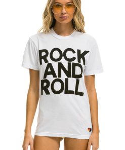 Aviator Nation Women’s Tops Rugby Stitch Cropped Crew Sweatshirt Relaxed – Vintage White // Neon
