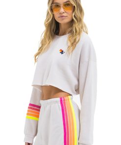 Aviator Nation Women’s Tops Rugby Stitch Cropped Crew Sweatshirt Relaxed – Dove Grey // Neon
