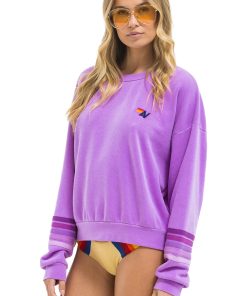 Aviator Nation Women’s Tops Rugby Stitch 2 Relaxed Crew Sweatshirt – Neon Purple // Purple