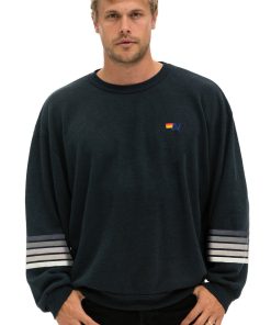 Aviator Nation Women’s Tops Rugby Stitch 2 Relaxed Crew Sweatshirt – Charcoal // Charcoal