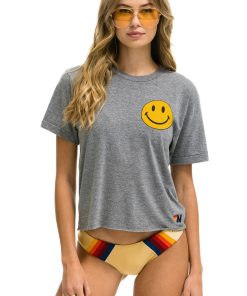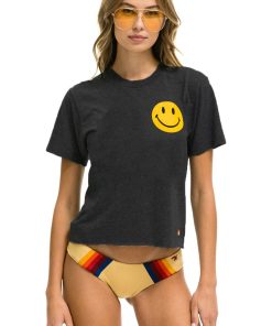 Aviator Nation Women’s Tops Smiley Sunset Sleeveless Relaxed Cropped Pullover Hoodie – Black